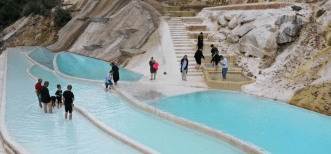 O hafif korku ve merak ile maden suyuna ulaşıyorsunuz. O da ne akan su sizin gövdenizden kalın. Tadına bakıyorsunuz. Marketten aldığınızdan hiçbir farkı yok. Hemen önü, evet hemen önünde göletler oluşmuş üç beş tane. Bir vahşilik var, bir karmaşıklık. Alışıyor hemen insan, kaybolduğunu hissediyor. Bu ne sessizlik, sadece ara sıra birkaç kuş sesi var sadece. Bir ağaç gözünüze takılıyor. Kucaklıyorsunuz. Yetişmiyor kolunuz. Zirvesini göreyim diyorsunuz. Boynunuza ağrılar giriyor. Olmaz böyle değil mi? Yapraklara sırt üstü yatıyor ve zirveyi görmeyi bekliyorsunuz. Yine yok. O an ılık bir rüzgar hissediyor, yaprakların dansını izliyor, ormanın sesini duyuyorsunuz. Kalk hadi bakalım, daha gezecek yerler var deyip traverten oluşumlarına doğru gidiyorsunuz. O da ne sanki yemyeşil bir ormanın içinden bembeyaz bir nehir akıyor. . Adımlar biraz hızlanıyor. Bu kadar uzun traverten mi olurmuş. Okuduğunuzda abartmış bunlar dediğiniz aklınıza geliyor. Çok mu şanslısınız ne? Bir de etrafta mor ve sarı orman gülleri var. Ormanın kokusunu, temiz oksijenini defalarca, tekrar tekrar gözlerinizi kapatıp içinize çekiyorsunuz.